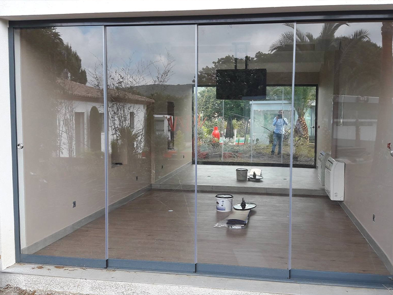 Les portes coulissantes à 3 et 5 rails sont composées de plusieurs panneaux de verre montés sur des cadres en aluminium, qui glissent horizontalement le long de rails parallèles. Le nombre de rails détermine le nombre de panneaux et la flexibilité d’ouverture. Les principales caractéristiques de ces portes incluent :